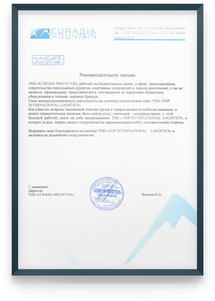 With the help of our subsidiary ТОО «TOP International Logistics» , we will carry out customs clearance of goods, select the best solution to your problem, prepare all necessary certificates and permits.